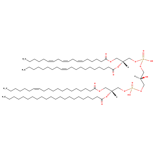 InChI=1S/C89H164O17P2/c1-5-9-13-17-21-25-29-33-37-40-41-44-48-52-56-60-64-68-72-76-89(94)106-85(80-100-87(92)74-70-66-62-58-54-50-46-42-38-34-30-26-22-18-14-10-6-2)82-104-108(97,98)102-78-83(90)77-101-107(95,96)103-81-84(79-99-86(91)73-69-65-61-57-53-49-45-36-32-28-24-20-16-12-8-4)105-88(93)75-71-67-63-59-55-51-47-43-39-35-31-27-23-19-15-11-7-3/h24,26,28,30,35-36,39,45,53,57,83-85,90H,5-23,25,27,29,31-34,37-38,40-44,46-52,54-56,58-82H2,1-4H3,(H,95,96)(H,97,98)/b28-24-,30-26-,39-35-,45-36-,57-53-/t83-,84+,85+/m0/s1 |